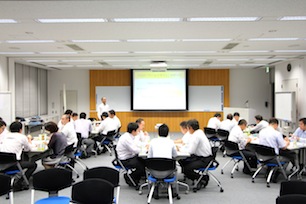 初日は夕刻からオープニングワークショップとしてワールドカフェ形式での意見交換会を行いました。自分自身を振り返り、自分たちの組織について深く考える「問い」に全員が楽しく真剣に語り合い、早くも真摯で積極的な空気が醸成されました。