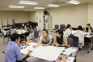 最初は堅かった参加者のみなさんも、ワークが進むにつれ笑顔が溢れ出し、楽しく真剣な時間をお持ちいただくことができました。仕事に対する思いを共有し、具体的な取組みに結び付いたときのすがすがしい笑顔がとても印象的でした。